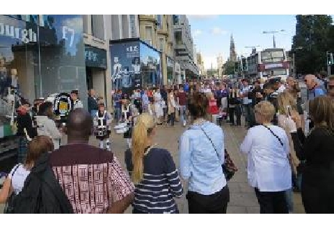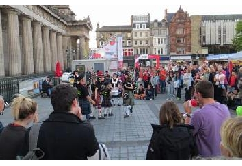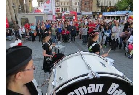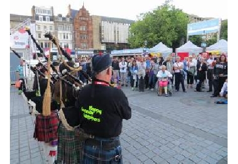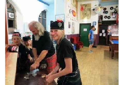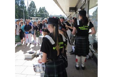 Immer wieder mussten wir unsere Dudelsackmusik präsentieren.